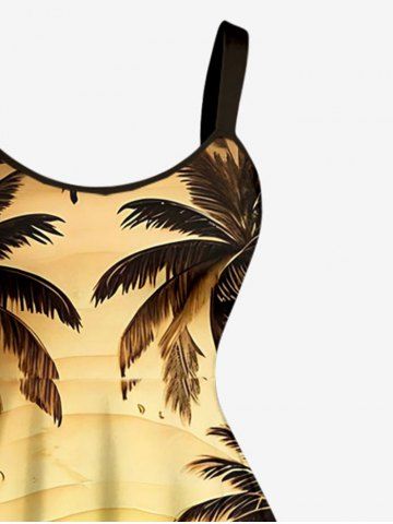 Coconut Tree Sailboat Sea Sun Print Plus Size Matching Hawaii Beach Outfit For Couples - Pale Goose Yellow