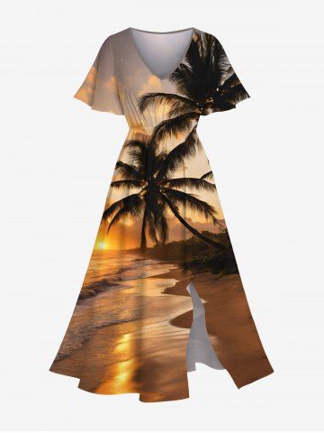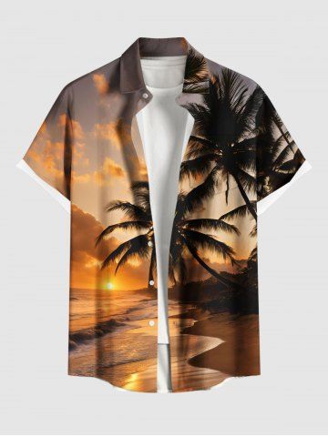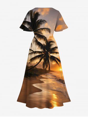 Matching Hawaiian Outfits > Coconut Tree Sea Beach Ombre Sunset Print Plus Size Matching Hawaii Beach Outfit For Couples