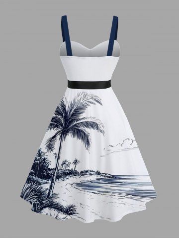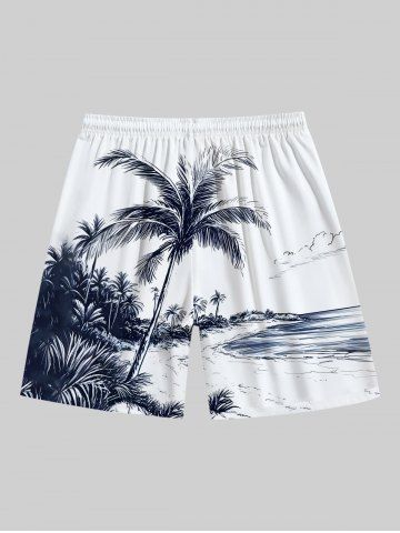 Matching Hawaiian Outfits > Coconut Tree Sea Beach Print Plus Size Matching Hawaii Beach Outfit For Couples