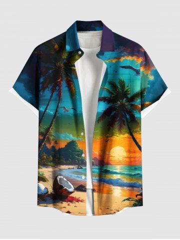 Matching Hawaiian Outfits > Coconut Tree Sea Beach Seascape Print Plus Size Matching Hawaii Beach Outfit For Couples