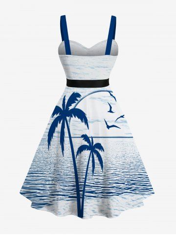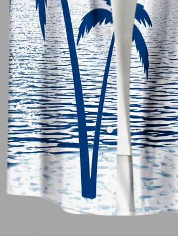 Coconut Tree Sea Bird Print Plus Size Matching Hawaii Beach Outfit For Couples - Blue
