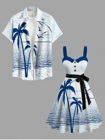 Matching Hawaiian Outfits > Coconut Tree Sea Bird Print Plus Size Matching Hawaii Beach Outfit For Couples