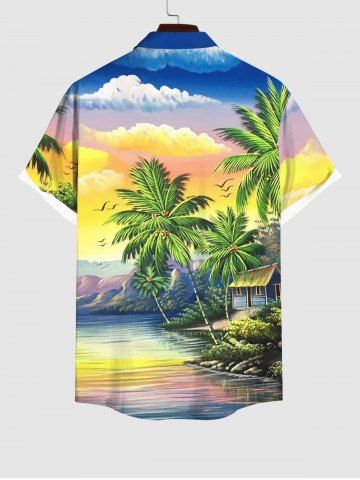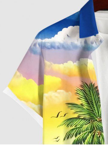 Coconut Tree Sea Colorful Ombre Sky Cloud Mountain Print Plus Size Matching Hawaii Beach Outfit For Couples - Multi-a