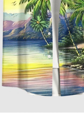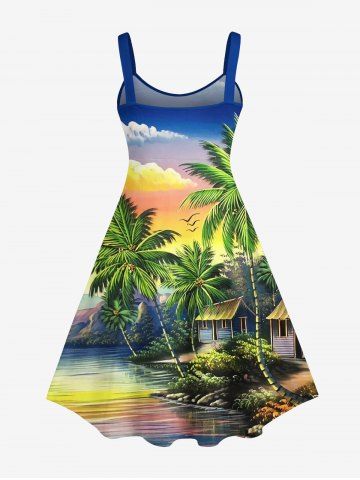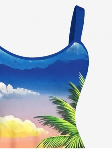 Matching Hawaiian Outfits > Coconut Tree Sea Colorful Ombre Sky Cloud Mountain Print Plus Size Matching Hawaii Beach Outfit For Couples
