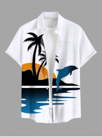 Coconut Tree Sea Dolphin Sun Print Plus Size Matching Hawaii Beach Outfit For Couples - White