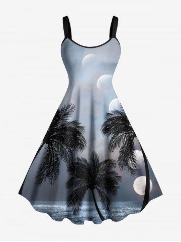 Coconut Tree Sea Moon Ombre Galaxy Print Plus Size Matching Hawaii Beach Outfit For Couples - Light Gray