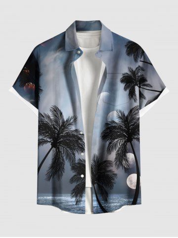Matching Hawaiian Outfits > Coconut Tree Sea Moon Ombre Galaxy Print Plus Size Matching Hawaii Beach Outfit For Couples