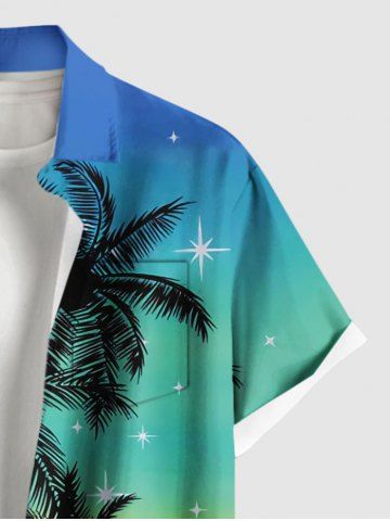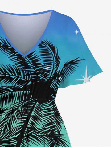 CoconuT Tree Sea Ombre Sky Print Plus Size Matching Hawaii Beach Outfit For Couples - Sky Blue
