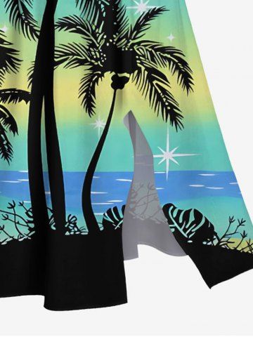 Matching Hawaiian Outfits > CoconuT Tree Sea Ombre Sky Print Plus Size Matching Hawaii Beach Outfit For Couples