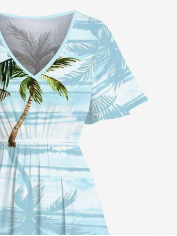 Coconut Tree Sea Print Plus Size Matching Hawaii Beach Outfit For Couples - Light Blue