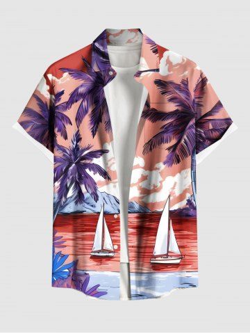Coconut Tree Sea Sailboat Mountain Cloud Print Plus Size Matching Hawaii Beach Outfit For Couples - Red