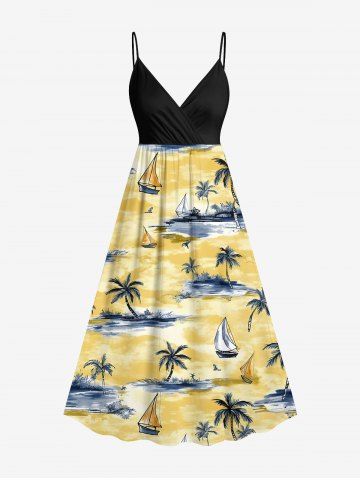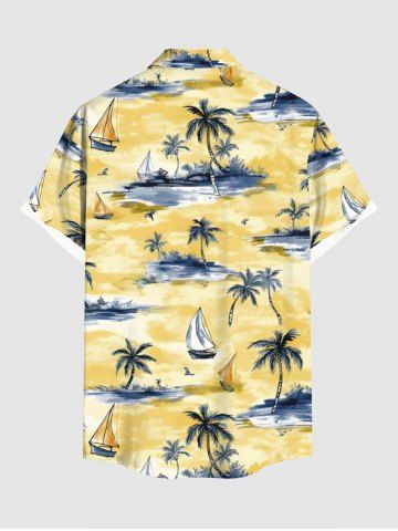 Coconut Tree Sea Sailboat Print Plus Size Matching Hawaii Cruise Beach Outfit For Couples - Yellow