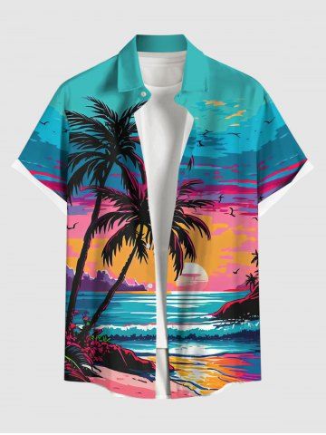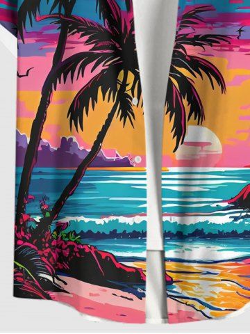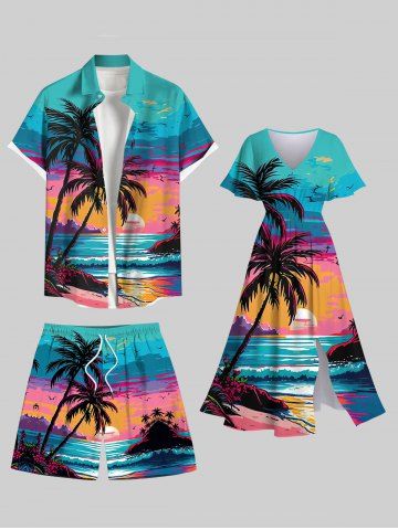 Matching Hawaiian Outfits > Coconut Tree Sea Sunset Cloud Colorblock Print Plus Size Matching Hawaii Beach Outfit For Couples