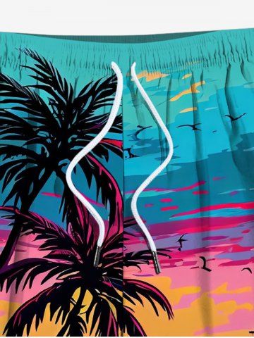 Coconut Tree Sea Sunset Cloud Colorblock Print Plus Size Matching Hawaii Beach Outfit For Couples - Light Blue