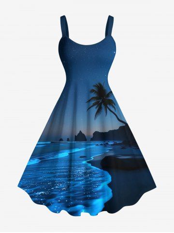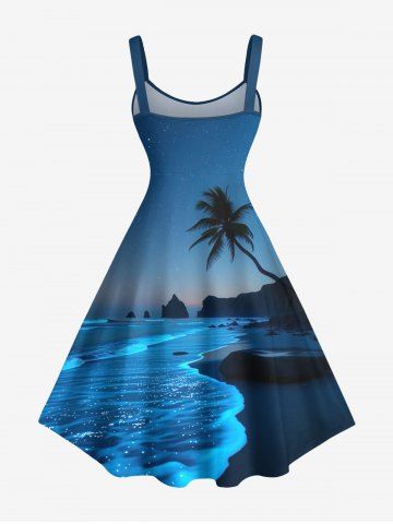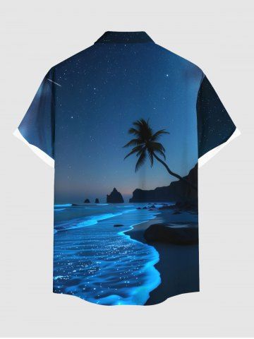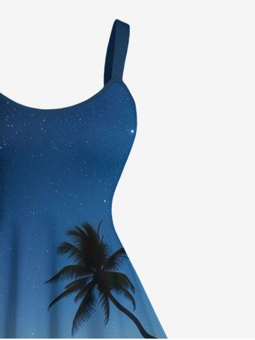 Matching Hawaiian Outfits > Coconut Tree Sea Wave Beach Ombre Galaxy Print Plus Size Matching Hawaii Beach Outfit For Couples
