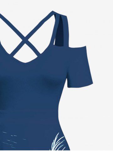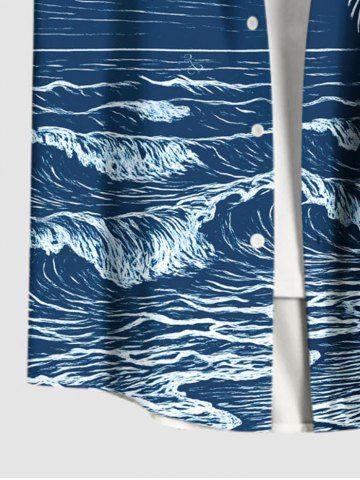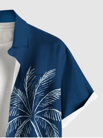 Coconut Tree Sea Waves Print Plus Size Matching Hawaii Beach Outfit For Couples - Navy Blue