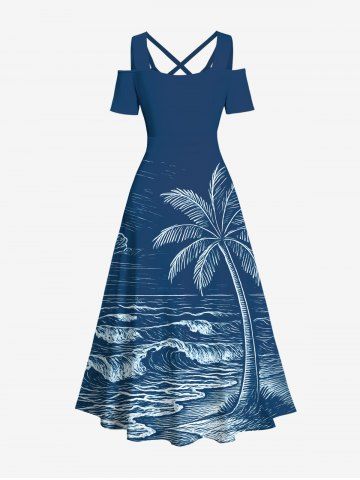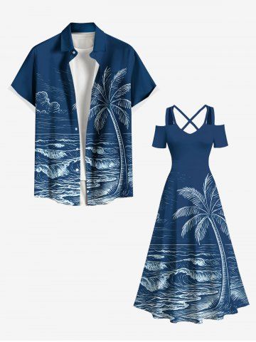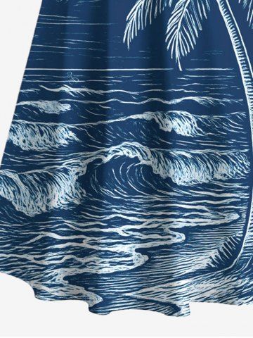 Matching Hawaiian Outfits > Coconut Tree Sea Waves Print Plus Size Matching Hawaii Beach Outfit For Couples