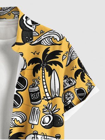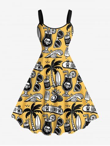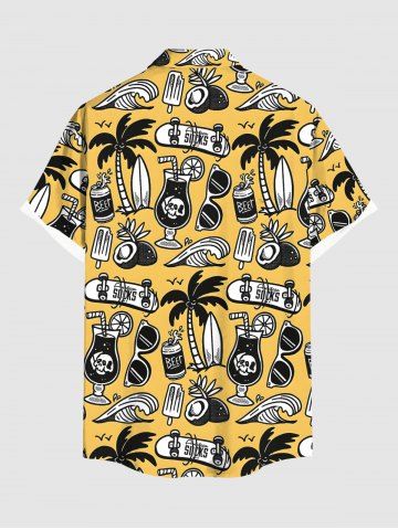 Coconut Tree Sea Waves Skull Juice Sunglasses Ice Cream Print Plus Size Matching Hawaii Beach Outfit For Couples - Yellow