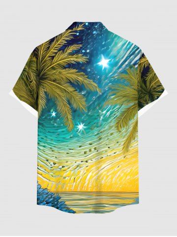 Coconut Tree Seascape Beach Oil Painting Print Plus Size Matching Hawaii Beach Outfit For Couples - Yellow