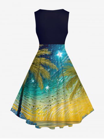 Matching Hawaiian Outfits > Coconut Tree Seascape Beach Oil Painting Print Plus Size Matching Hawaii Beach Outfit For Couples