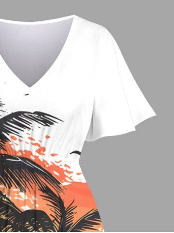 Coconut Tree Seascape Bird Ombre Colorblock Print Plus Size Matching Hawaii Beach Outfit For Couples - White