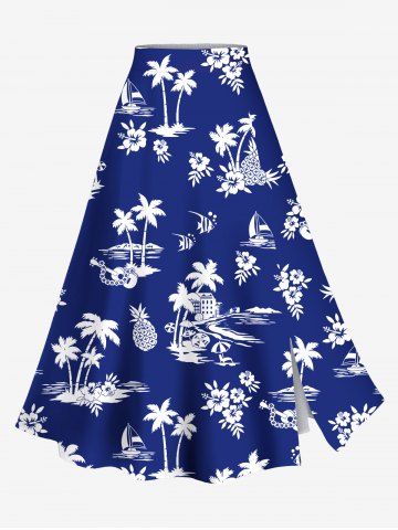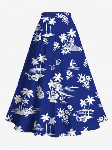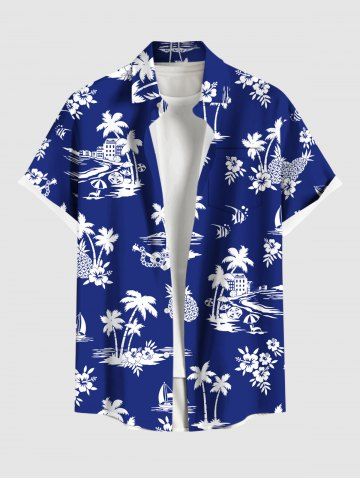 Coconut Tree Seascape Flowers Pineapple Print Plus Size Matching Hawaii Beach Outfit For Couples - Blue