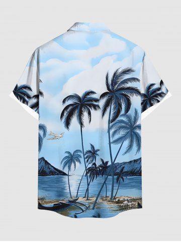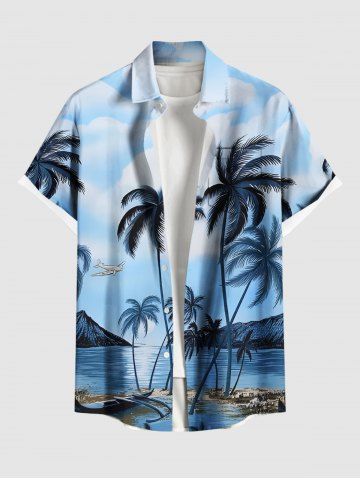 Coconut Tree Seascape Ombre Sky Print Plus Size Matching Hawaii Beach Outfit For Couples - Blue