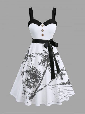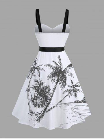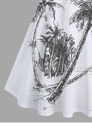 Coconut Tree Seascape Print Plus Size Matching Hawaii Beach Outfit For Couples - White