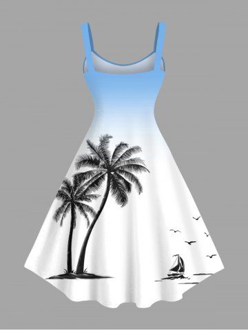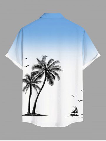 Coconut Tree Ship Bird Ombre Print Plus Size Matching Hawaii Beach Outfit For Couples - White