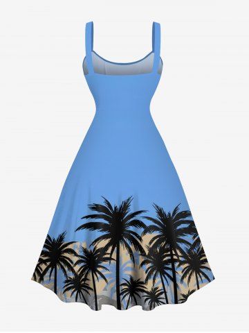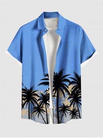 Coconut Tree Sky Print Plus Size Matching Hawaii Beach Outfit For Couples - Sky Blue