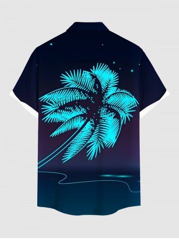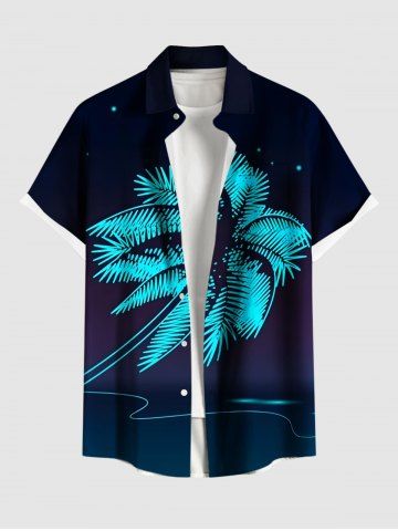 Coconut Tree Star Print Plus Size Matching Hawaii Beach Outfit For Couples - Deep Blue