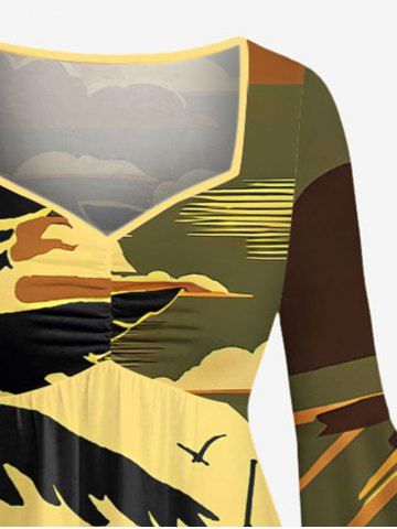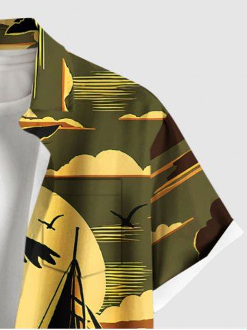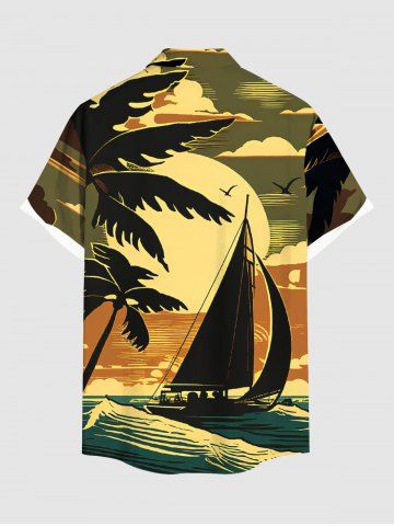 Coconut Tree Sun Boat Sea Waves Print Plus Size Matching Hawaii Beach Outfit For Couples - Olive Green