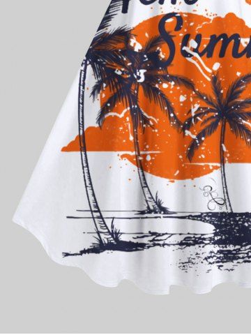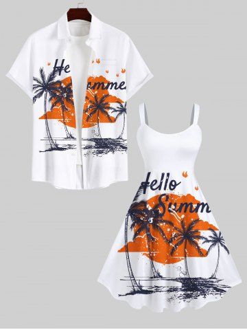 Matching Hawaiian Outfits > Coconut Tree Sun Cloud Letters Print Plus Size Matching Hawaii Beach Outfit For Couples