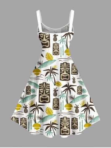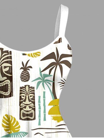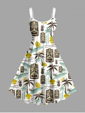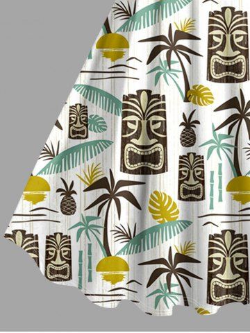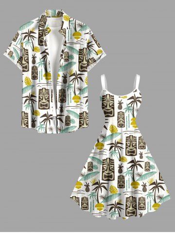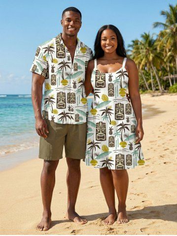Matching Hawaiian Outfits > Coconut Tree Sun Leaf Ethnic Mask Print Plus Size Matching Hawaii Beach Outfit For Couples