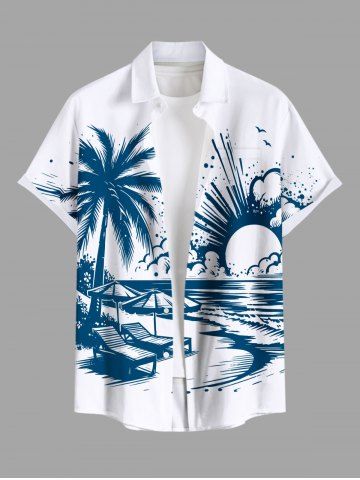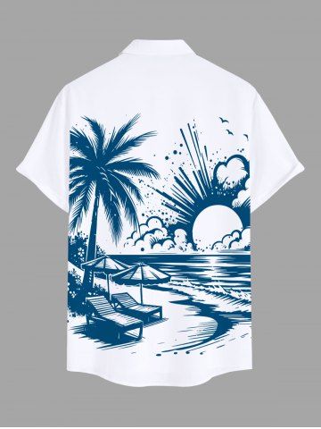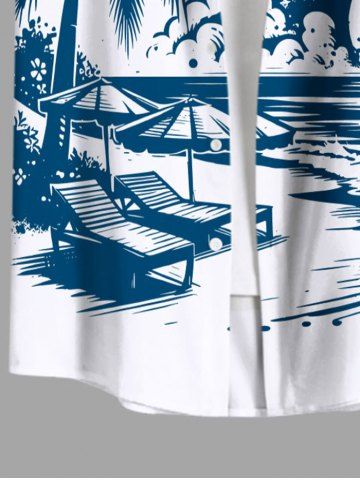 Coconut Tree Sun Parasols Lounge Chair Seascape Print Plus Size Matching Hawaii Beach Outfit For Couples - White