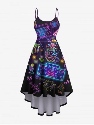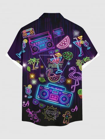 Coconut Tree Sun Recorder Flamingo Watermelon Print Plus Size Matching Hawaii Beach Outfit For Couples - Black
