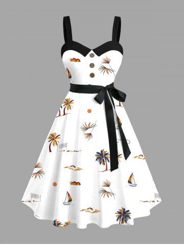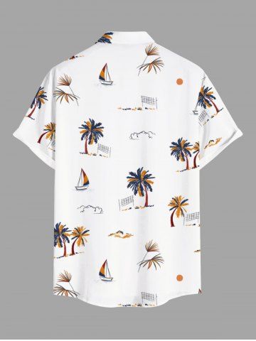 Coconut Tree Sun Sailboat Print Plus Size Matching Hawaii Beach Outfit For Couples - White