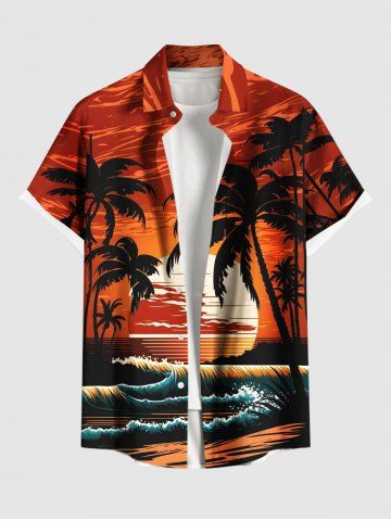 Coconut Tree Sun Sea Waves Print Plus Size Matching Hawaii Beach Outfit For Couples - Red