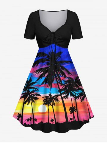 m*****a4Coconut Tree Sunset Ombre Sky Colorblock Print Plus Size Matching Hawaii Beach Outfit For CouplesColor: MULTI-Acolor and fabric are great and very flattering but dress sizes did run large for me. will be returning and have reordered. Men’s shirt was perfect