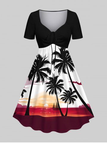 S*****d5Coconut Tree Sunset Sailboat Colorblock Print Plus Size Matching Hawaii Beach Outfit For CouplesColor: MULTI-AThe color combo I like given it's not something I have or would typically wear. I am anxious to see how it looks on the beach or on a cruise ship soon