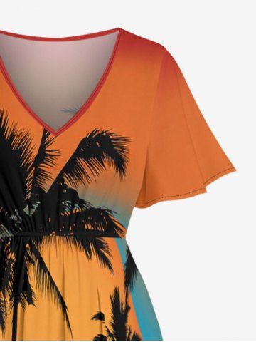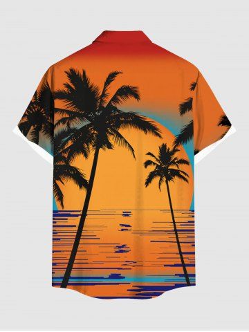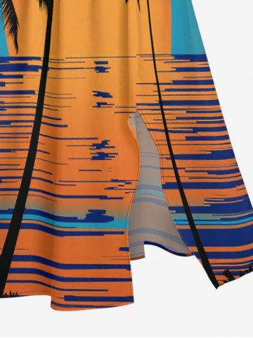 Coconut Tree Sunset Sea Print Plus Size Matching Hawaii Beach Outfit For Couples - Orange