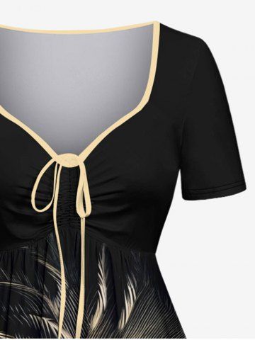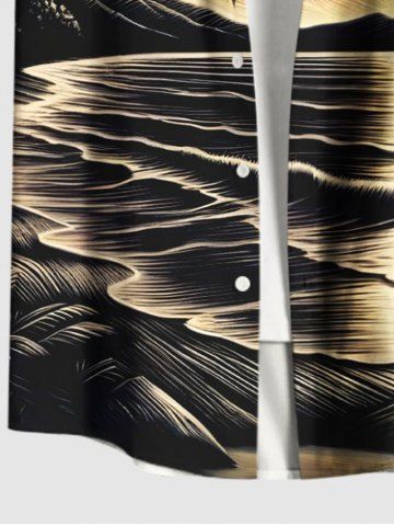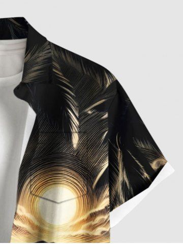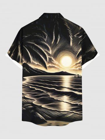 Coconut Tree Sunset Sea Waves Print Plus Size Matching Hawaii Beach Outfit For Couples - Black
