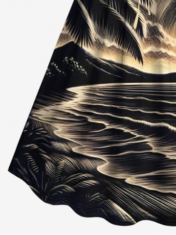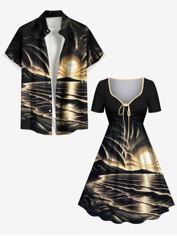 Matching Hawaiian Outfits > Coconut Tree Sunset Sea Waves Print Plus Size Matching Hawaii Beach Outfit For Couples
