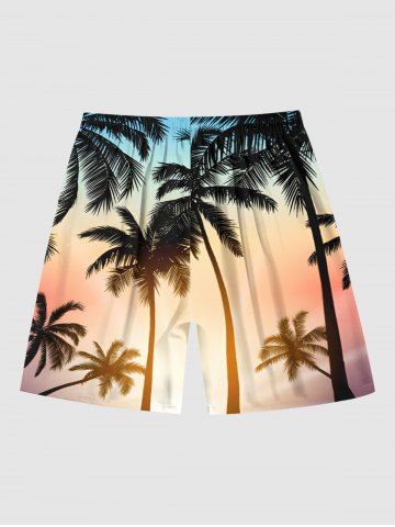 Matching Hawaiian Outfits > Coconut Tree Sunshine Ombre Print Plus Size Matching Hawaii Beach Outfit For Couples