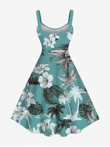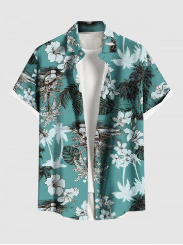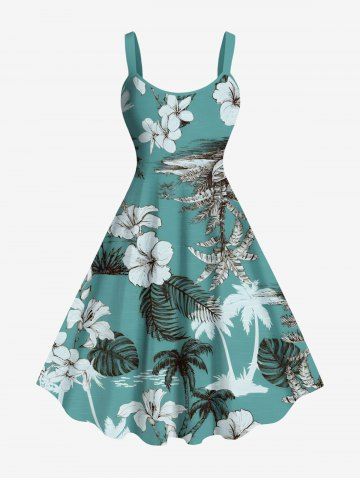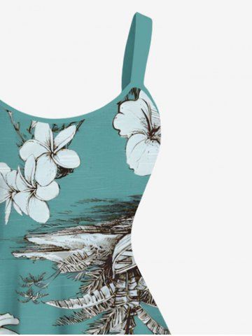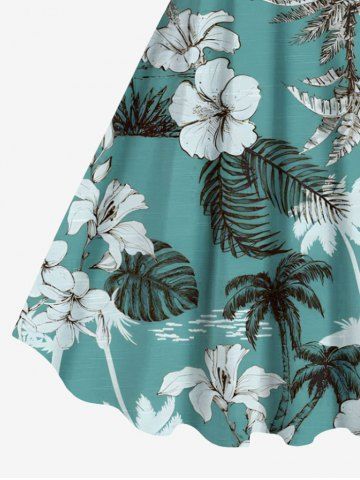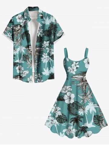 Matching Hawaiian Outfits > Coconut Tree Tropical Leaf Hibiscus Flower Print Plus Size Matching Hawaii Beach Outfit For Couples