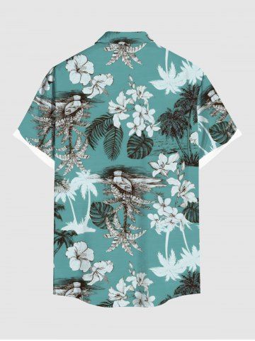 Coconut Tree Tropical Leaf Hibiscus Flower Print Plus Size Matching Hawaii Beach Outfit For Couples - Green