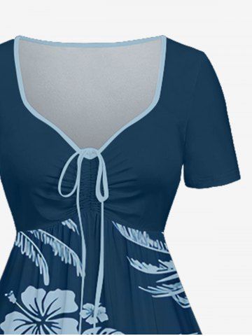 Coconut Tree Tropical Leaf Hibiscus Flower Print Plus Size Matching Hawaii Beach Outfit For Couples - Deep Blue