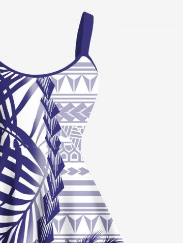 Matching Hawaiian Outfits > Coconut Tree Tropical Leaf Print Plus Size Matching Hawaii Beach Outfit For Couples