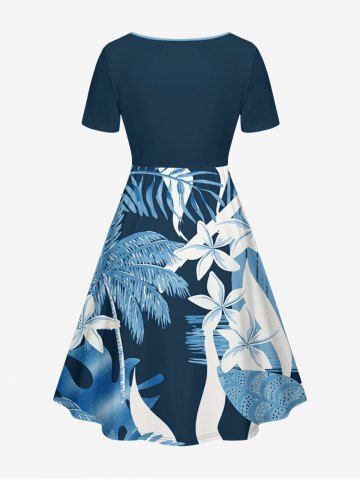 Coconut Tree Tropical Leaf Sea Flower Print Plus Size Matching Hawaii Beach Outfit For Couples - Cadetblue