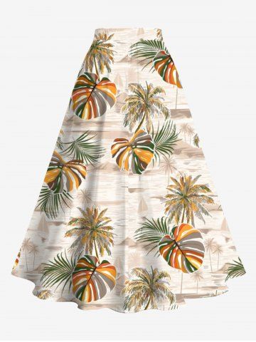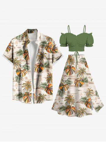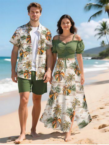 Matching Hawaiian Outfits > Coconut Tree Tropical Leaf Sea Print Plus Size Matching Hawaii Beach Outfit For Couples